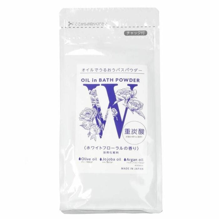 デコホームのバスパウダーはオリーブ果実油・ホホバ種子油・アルガン油を配合しており、使うとお湯にとろみが生まれ保湿効果も!