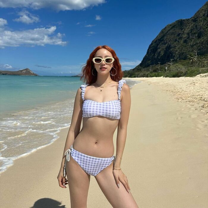 兄の中町JPさんともYouTubeで活躍するほか、近年ではモデルとしてもファッションイベントに出演するなど若者に大人気の中町さんは、インスタグラムで「1年振りのHawaii 1番好きな国」とコメントした投稿をし、ビーチで白い縁のサングラスをかけ、ギンガムチェックのビキニ姿でモデルのようなカッコいいポージングを決めていました。