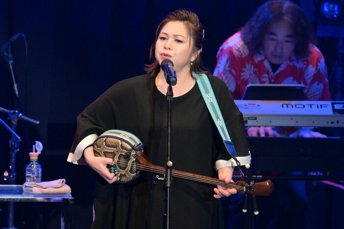 夏川りみさんは、三線を片手に颯爽とステージへ。