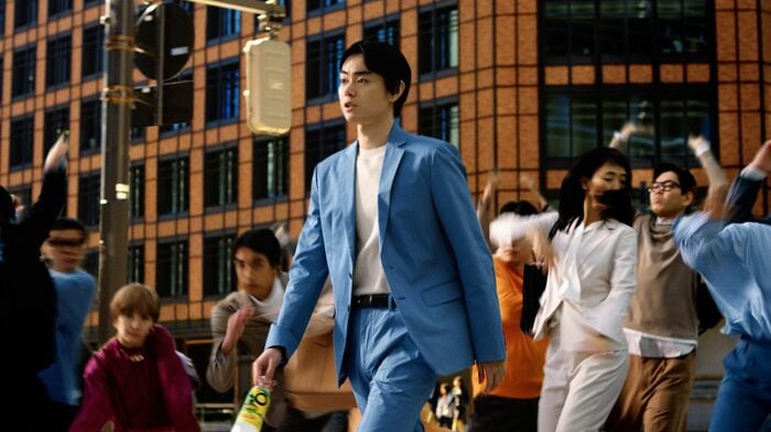 新TVCM「午後!刺激!GO!」編では、仕事や気持ちの停滞感を感じる午後⼆時に街中を歩く菅田さん。
