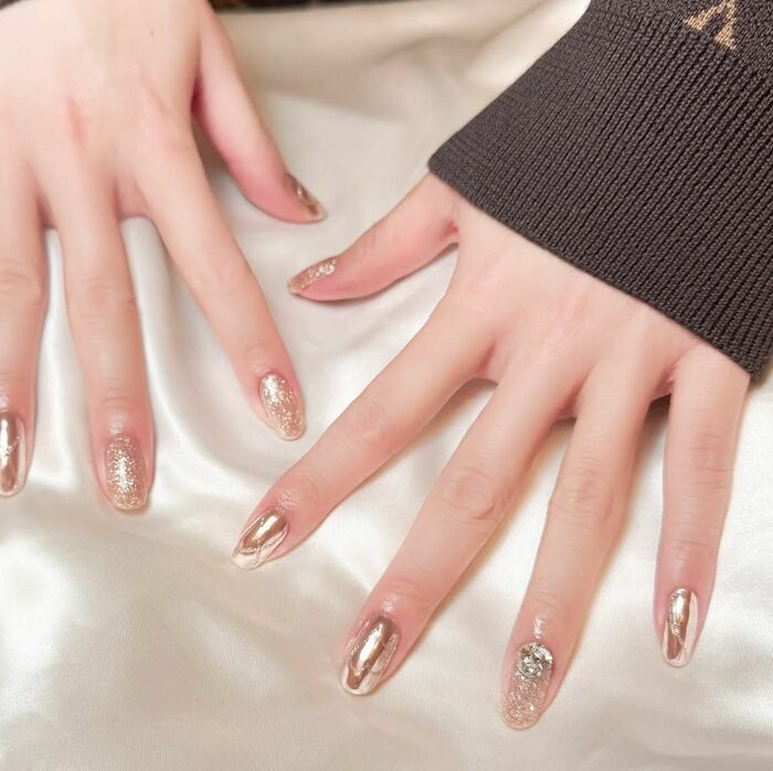 上品なゴールドやキラキラと輝く大きなストーンが指先を華やかに飾ります。