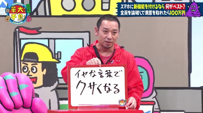 大悟:だから、スマホで傷つく人も出てくる。だったら、これやろ(と言って見せたフリップは「イヤな言葉でクサくなる」)。