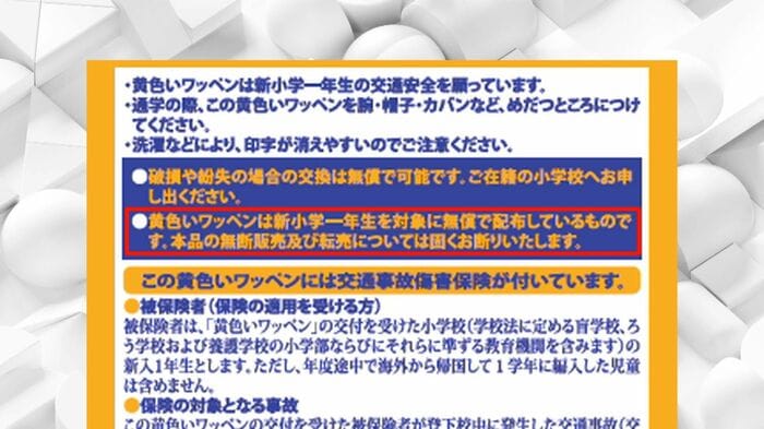 全国の新小学1年生に対し交通安全のために毎年配布される「黄色いワッペン」。2024年にポケットモンスターの人気キャラクター「ピカチュウ」が描かれた“特別仕様”の黄色いワッペンが配布されましたが、インターネットで転売される事態となっています。