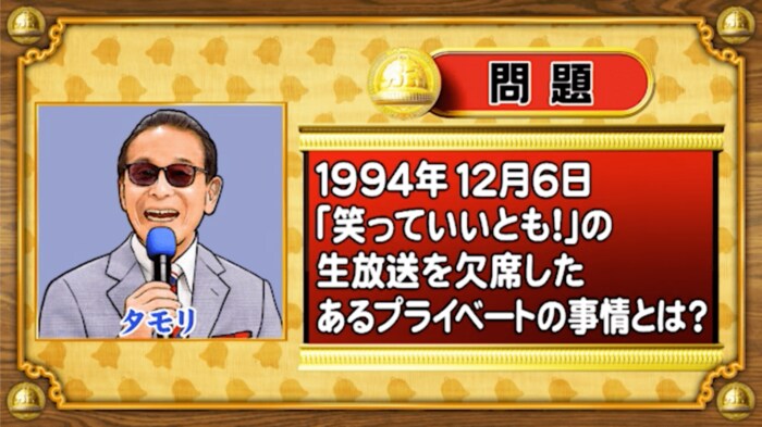 最後は、いいとも問題。今から30年前の1994年、人気番組『笑っていいとも!』の司会のタモリさんが生放送を欠席した、あるプライベートの事情とは何だったでしょうか?