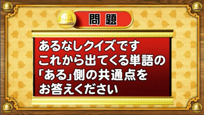 最後は、あるなしクイズ。次の単語の「ある」側の共通点を答えてください。