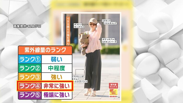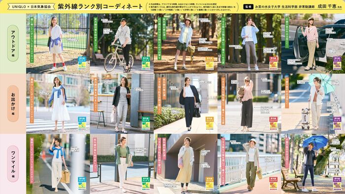 日本気象協会は、ユニクロとコラボして、紫外線ランク別のオススメコーディネートを紹介。