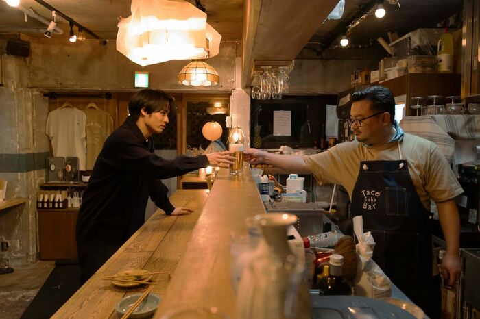 まず物語の序盤に、主人公・天堂海斗(赤楚)の行きつけの居酒屋の店主・五十嵐剛役で休日課長が登場。恋人・朝比奈陽月(芳根京子)にプロポーズする際に使用するほど、剛のお店は海斗にとっては大切な場所のようです。