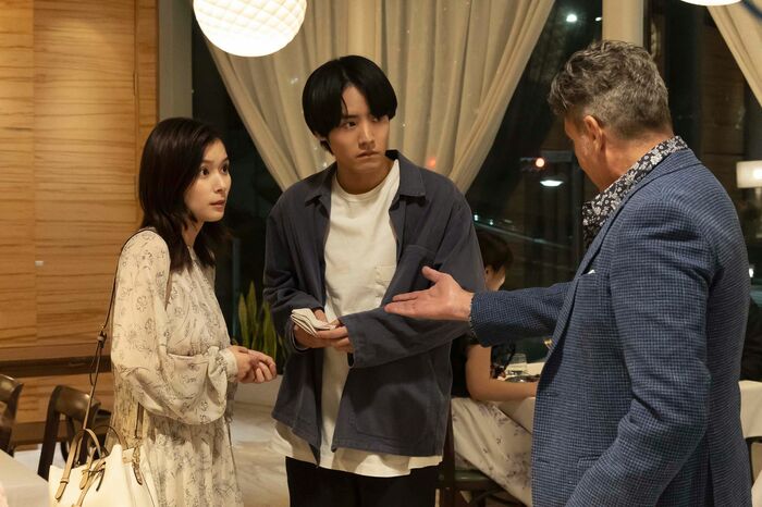 そして、ジローラモさんは、海斗と陽月が初めて出会ったレストランにいた客として、本人役で登場。アプリで出会った海斗と陽月はレストランで初めて対面しますが、緊張で逃げるように帰ろうとする陽月を追った海斗がジローラモさんに激突。ジローラモさんは持っていたワインが自分にかかってしまいました。