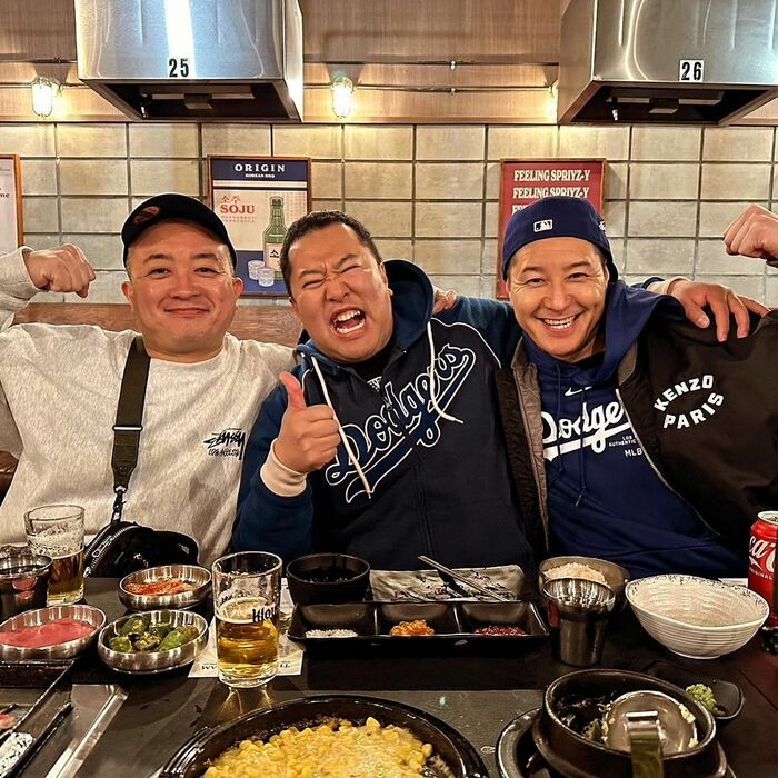 ドジャーズのパーカーを着用して食事を楽しむ様子も!