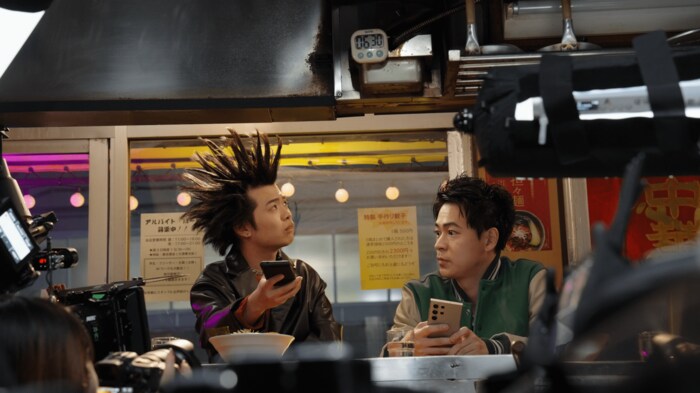 成田さんが最新スマートフォンのAI機能を教えて、ラーメンに映り込む影を簡単に消してあげる、というストーリー。