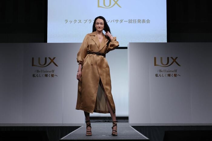 ラックスブランドアンバサダーに就任した富永さんは、特設ランウェイで、ファッションショーさながらに、自慢の“ツヤ髪”をなびかせて、“美髪”ウォーキングを披露。