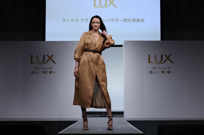冨永愛さんが4月8日、「ラックス ブランドアンバサダー就任発表会」に出席しました。
