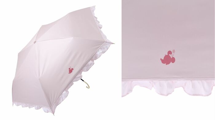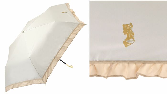 さらに、淡い色とフリルに『美女と野獣』に登場するベルがデザインされた大人っぽい日傘も登場します。この日傘も晴雨兼用で、UVカット率・遮光率ともに99.9%以上で、かわいいだけでなく機能性も備わっているのもポイントです。