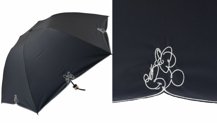 また、ラインアートが目を引く日傘は、ミニーが描かれ大人かわいいデザインが特徴です。