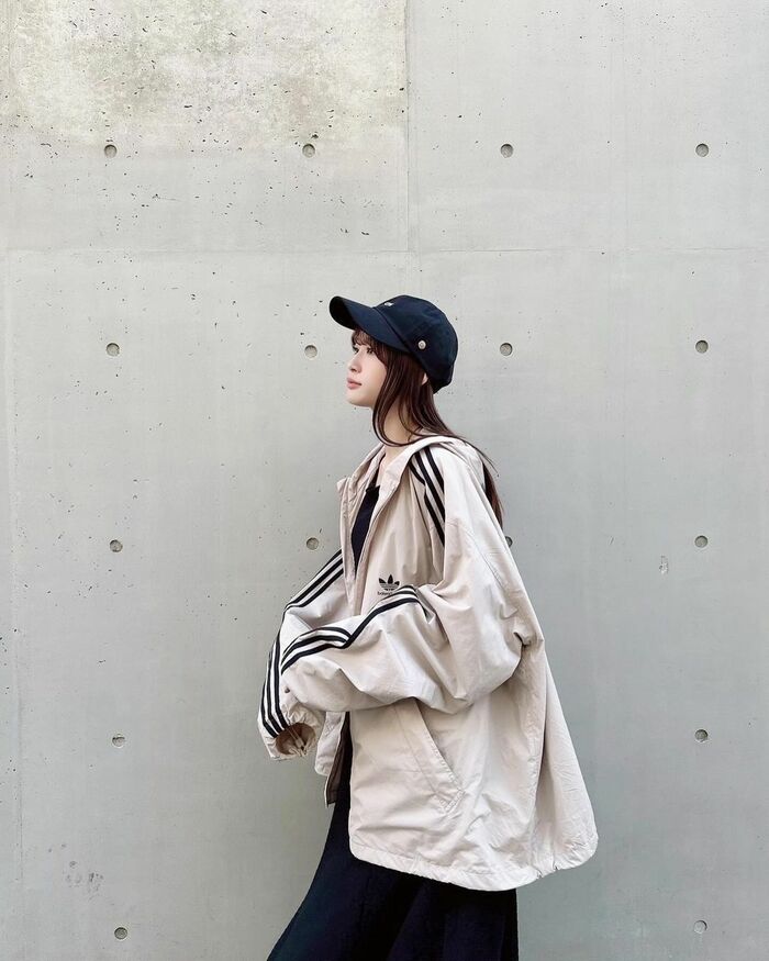 また、真っ白いパーカーのフードをかぶるショットもありました。