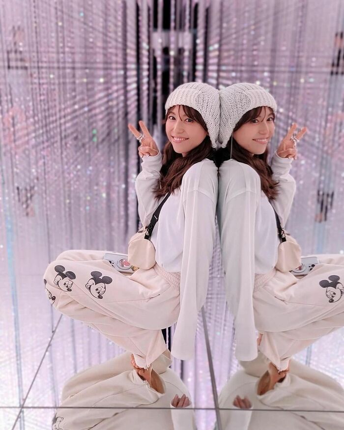 キラキラした空間で笑顔でピースサインをする写真も。