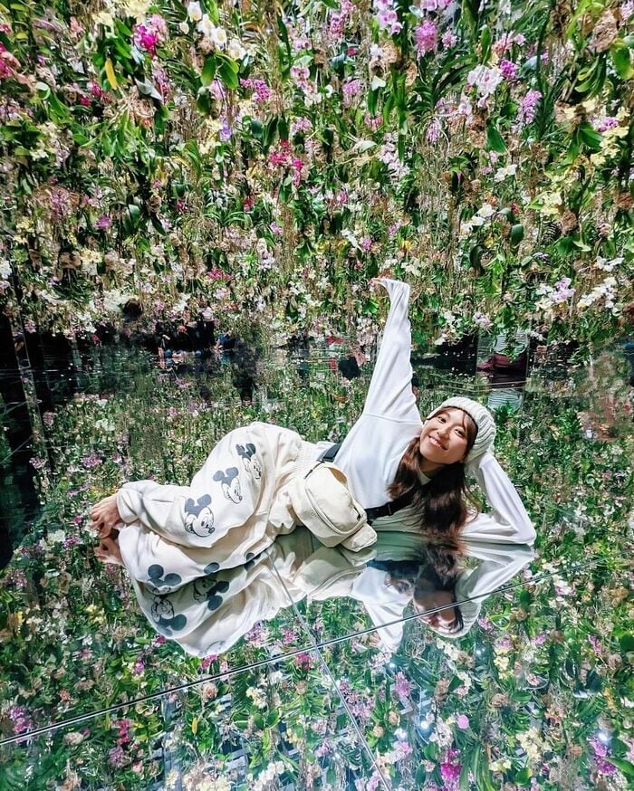 投稿された画像には、チームラボプラネッツを楽しむ若槻さんの姿が!