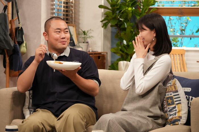 岡部さん、岡崎紗絵さんがカップルを演じるコント「不満~紗絵ちゃんと大ちゃん~」では、紗絵(岡崎)の手料理を食べている大(岡部)が、「おいしい!」「本当に料理がうまいよね」と大絶賛。