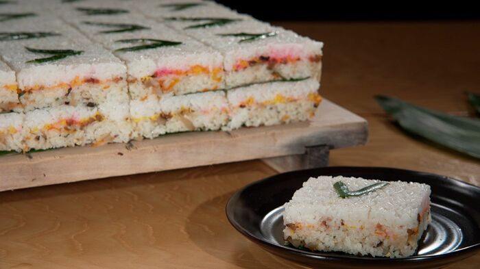 松岡さんが、「噛んでいくうちに、ゆずの香りと混ざっていく感じがいいですね」と絶賛した味付けには、ゆず酢だけでなく、魚のエソをミンチにしたものが混ぜられているそう。そして具には、にんじん、ごぼう、たけのこ、わらび、しいたけ、たまごが入っているとのこと。