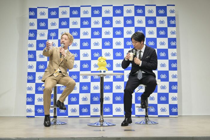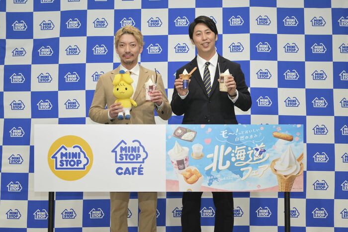 ニューヨーク(嶋佐和也さん、屋敷裕政さん)が4月3日、「ミニストップ プライベートブランドリニューアル発表会」に出席しました。