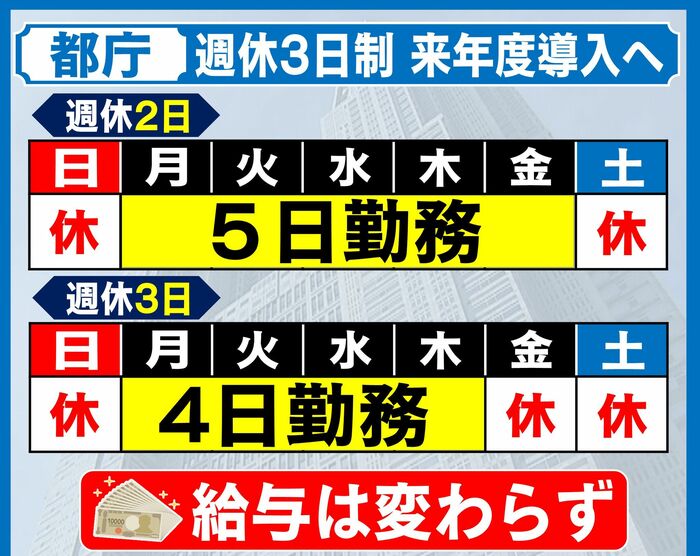 また、すでに週休3日制を導入している千葉県や茨城県では好評だということです。