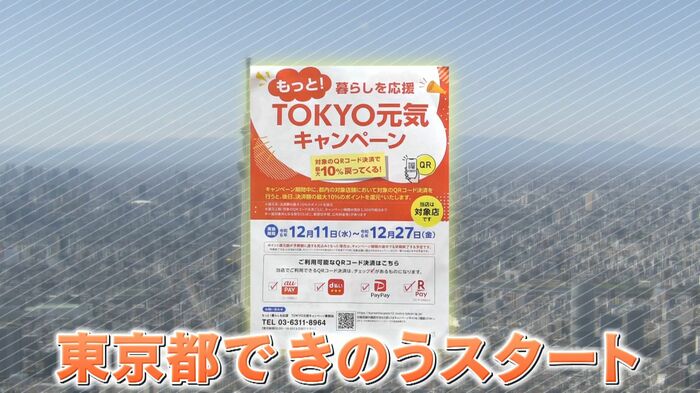 2024年12月11日から始まった、「もっと!暮らしを応援 TOKYO元気キャンペーン」。期間内に都内の対象店舗で、QRコード決済を行うと、決済額の最大10%分のポイントが還元されます。