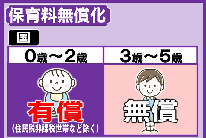 保育料は現在、国が3歳から5歳については無償、住民税非課税世帯などを除いて0歳から2歳は有償となっています。