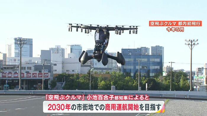 小池都知事は新たに空飛ぶ車を実現しようということ12月3日に表明しました。実際に5月のイベントで空飛ぶ車の実験をしているわけなんですが、2030年、市街地での商用運行開始を目指すということを表明しました。