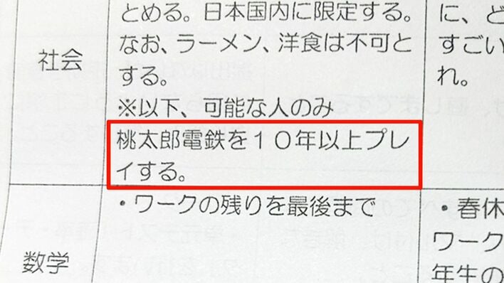 東京都内の中学校の春休みの宿題「桃太郎電鉄を10年以上プレイする。」