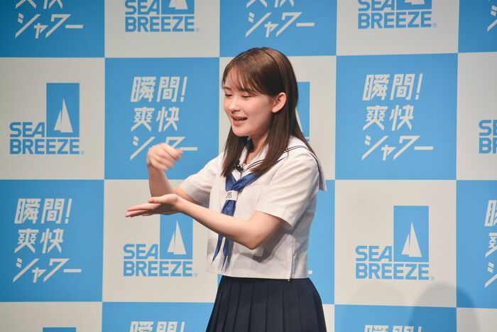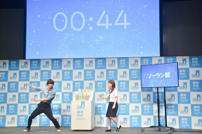 クリアはできませんでしたが、それぞれPRタイムに。実際に商品を使用しての感想を伝え、最後に「瞬間!爽快シャワー!」と声を合わせると会場には銀色のテープが降りかかり、佐野さんと畑さんは驚いた表情を見せていました。
