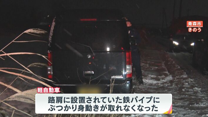 事故を起こしたのは軽自動車。路肩に設置されていた鉄パイプにぶつかり、その後、身動きが取れなくなってしまったといいます。