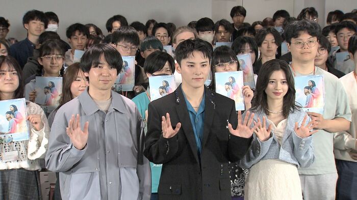 映画完成を記念して、入学式を直前に控える都内の大学入学生約115人を対象にドラマ『silent』(フジテレビ)を手掛けた風間監督が特別講義。このイベントに川西さんと桜田さんがサプライズで登場しました。