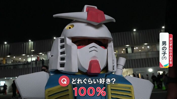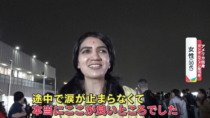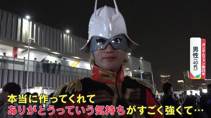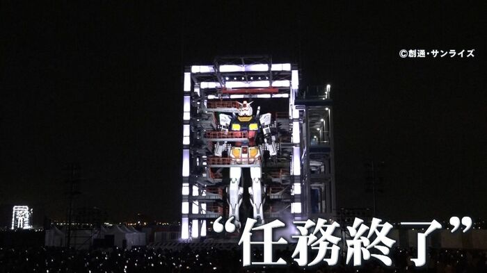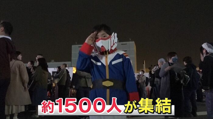 会場には、キャラクターに扮する人や、最後に見に来るガンダムファンなど、およそ1500人が集結し、任務終了まで見届けました。