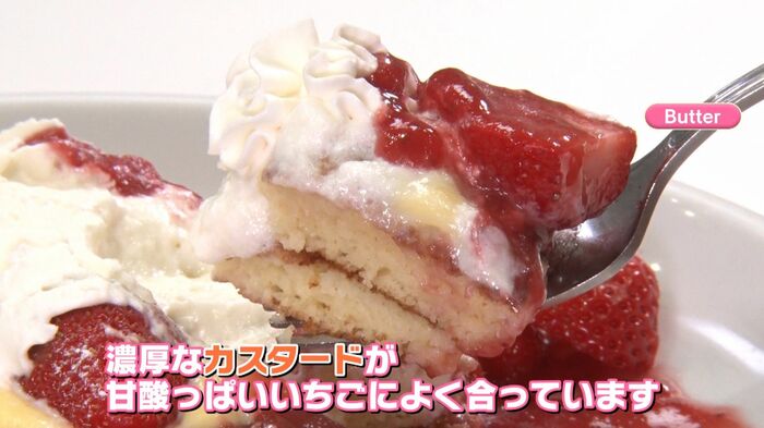 パンケーキ専門店『Butter』で今楽しめるのが、2024年5月11日までの期間限定で食べられる、旬の国産いちごがいっぱい乗ったパンケーキが登場!