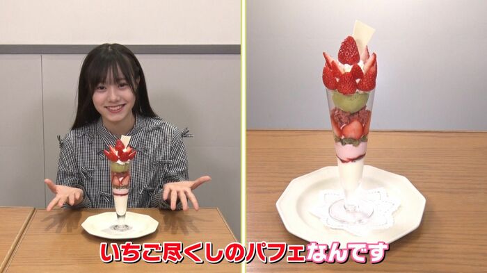 仲村悠菜さんは「甘くてみずみずしくておいしいです」とぜいたくないちごパフェを楽しんでいました。