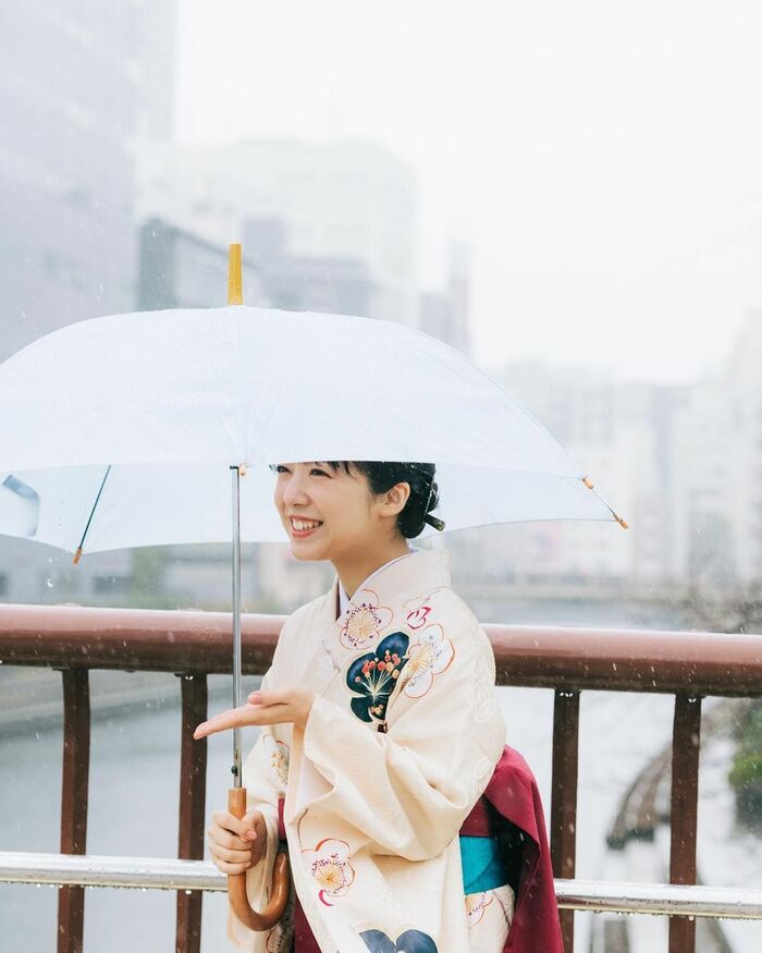 さらに次の投稿では、「袴で卒業式に出席できました。」と白と赤の袴姿を披露。当日は雨が降っていたようで、傘をさしながらはにかむ写真も!