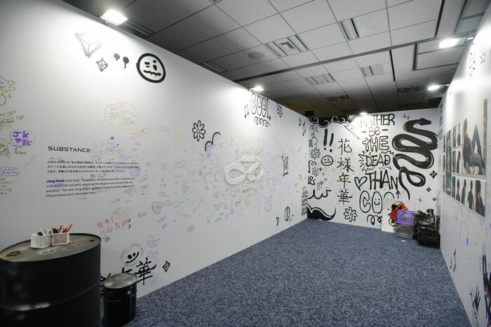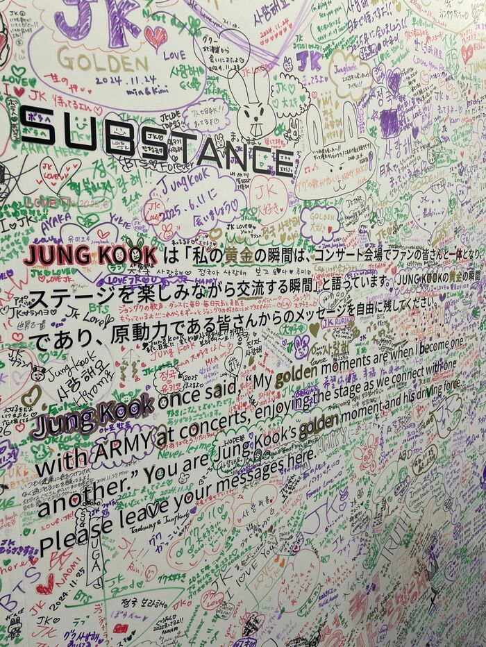 また、壁には来場した多くのファンからJUNG KOOKさんへの愛に満ちたコメントが、日本語のみならず韓国語や英語などでもびっしりと書き込まれているんです!