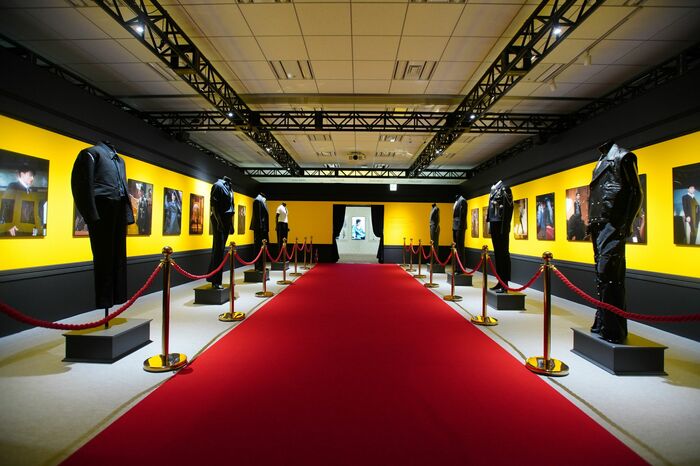 入場すると、高級感漂うレッドカーペットが敷かれた空間が広がり、JUNG KOOKさんが出演したミュージックビデオやライブパフォーマンスで実際に使用した衣装などが多数展示されています。