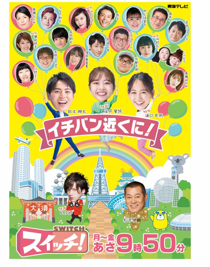 放送12年目を迎える東海テレビの朝の情報番組『スイッチ!』が、4月よりキャッチフレーズを「イチバン近くに!」と掲げリニューアルします。