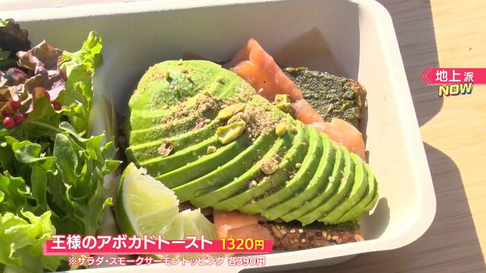 アボカドやサーモンを使った具材たっぷりのトーストなどをテイクアウト可能で公園内で食べられます。