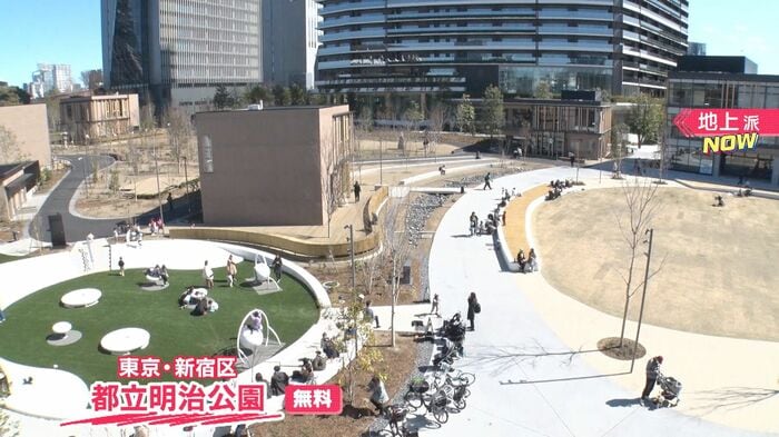まず大橋さんがやってきたのは、国立競技場のすぐ横に2024年1月に全面オープンした『都立明治公園』。“誰でも楽しめる”をテーマにユニークな遊具などが設置されている「インクルーシブ広場」など3つの広場に分かれています。