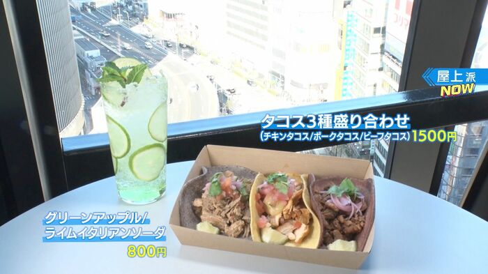 併設されたカフェ・バーでは、銀座の街並みを一望しながらタコスや季節限定メニューなどを楽しむことができます。