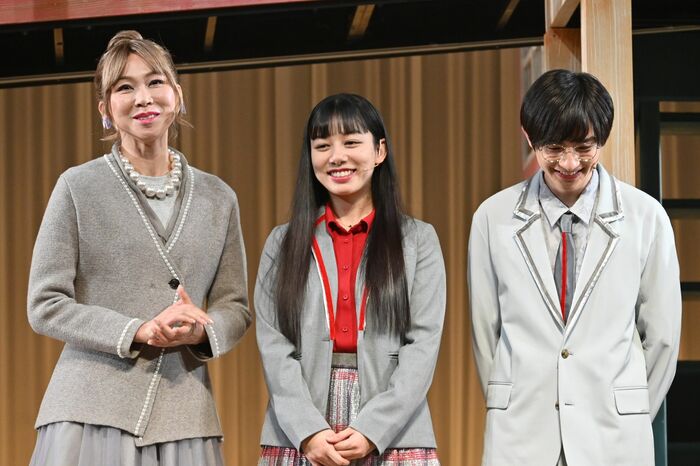 その町田くんの母役を演じる湖月さんは、「皇輝くんの周りにはいつも笑顔があふれているし、町田くんそのもの」とニッコリ。フォトコールではオープニングのシーンが公開されましたが、その際に見た川﨑さんの目が湖月さんにとっては“町田くん”にしか見えず印象的だったそうで「見上げてくる目がキラキラで、感動しちゃった」と興奮気味に語る場面も。