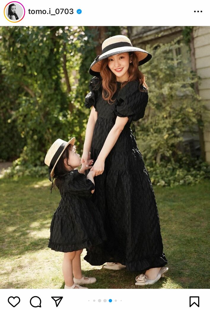 板野さんは自身がディレクターを務めるブランドの新商品となる“ママベビお揃いシリーズ”の画像を投稿。母親と娘がおそろいで着ることができるドレスを着用した写真を公開しました。