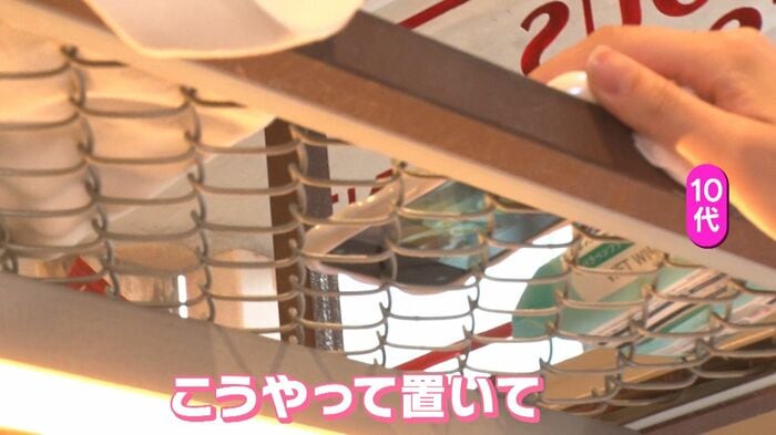 スマホの内カメラを起動し、荷物置きの網にかぶらないよう設置していました。