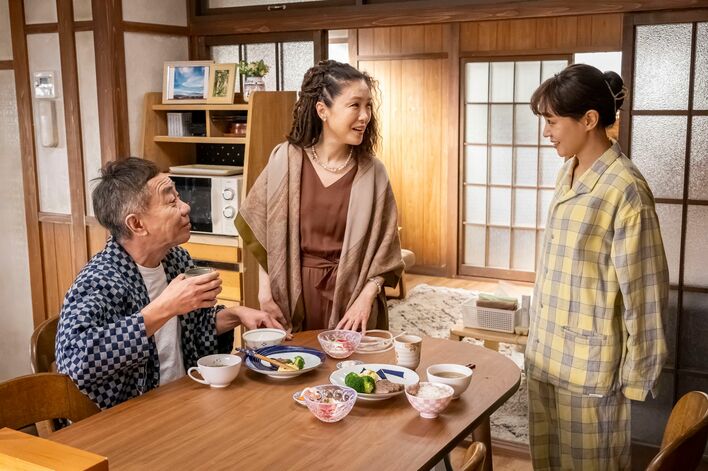 椎名家には朝から雅彦(木梨憲武)の姉・神尾まき(筒井真理子)と主治医・阿波野弘(光石研)がやって来て、雅彦が新婦の父として瞳の隣に立てるよう、万全のサポート体制を整える。