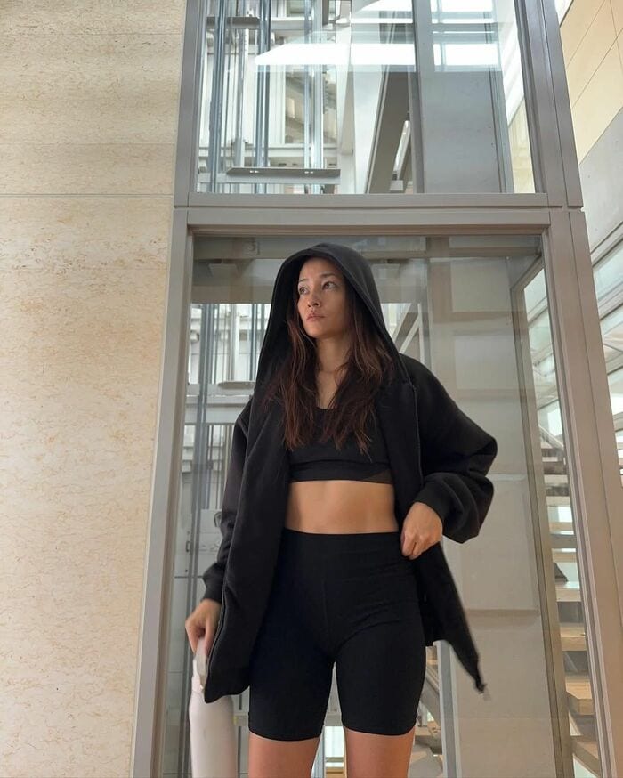 投稿された写真では、上下黒のピチッとしたトレーニングウェアの上に、ゆったりとしたパーカーを羽織った黒木さんの姿が!