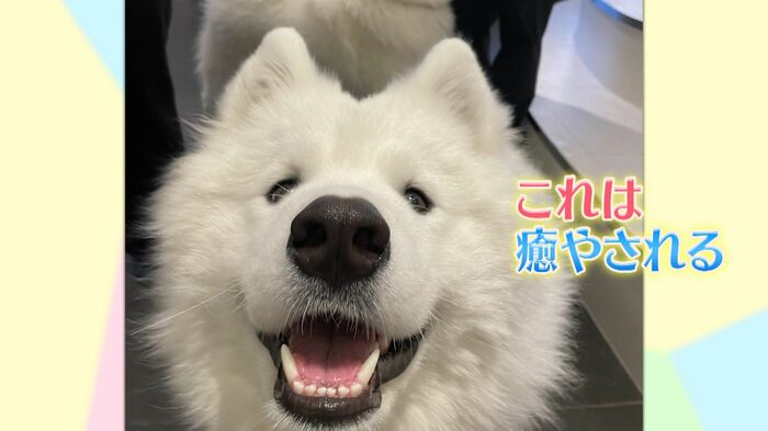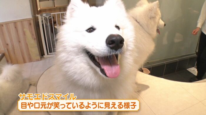 また、このワンちゃんたちが大人気の理由は、その特徴的な“サモエドスマイル”。目や口元がいつも穏やかに笑っているように見える様子のことをいいます。
