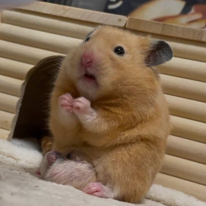 何かをおねだりするのは、ハムスターの「ナゲット」くん、生後5カ月の男の子。