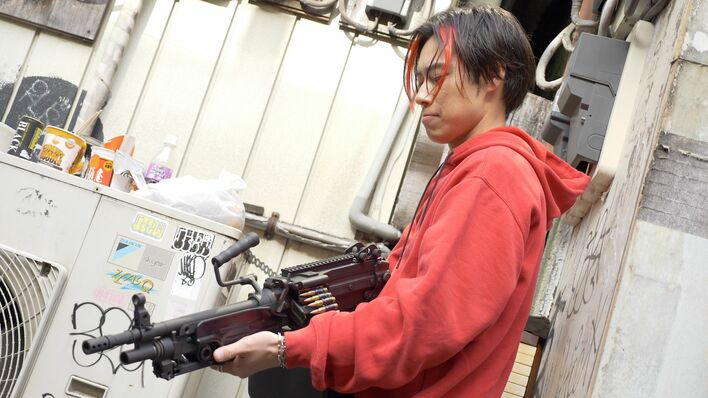 目には見えない“銃”を持って戦いが繰り広げられる設定でしたが、戸塚さんは実際に銃を持ったときの感覚を掴むため、撮影前にモデルガンを使用した演技指導が行われました。